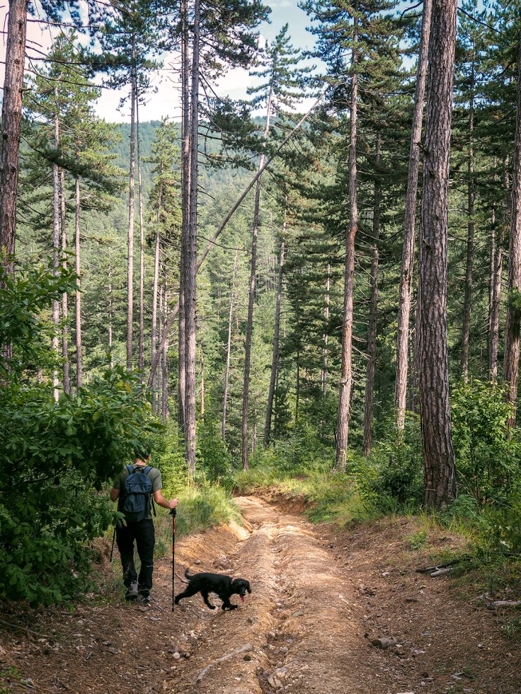 Ние, особено аз, не бяхме в много добра форма, още изморени от работната седмица, решихме, че може да направим само част от маршрута. Движи се с леко, с постепенно изкачване, почти равно, на едно място минахме по-стръмен склон, но като цяло пътеката е широка като черен път, но не става за кола. Маршрутът се движи основно в гората, нямаше открити гледки по пътя ни. Вероятно има гледка на крайната точка – местност Просце.