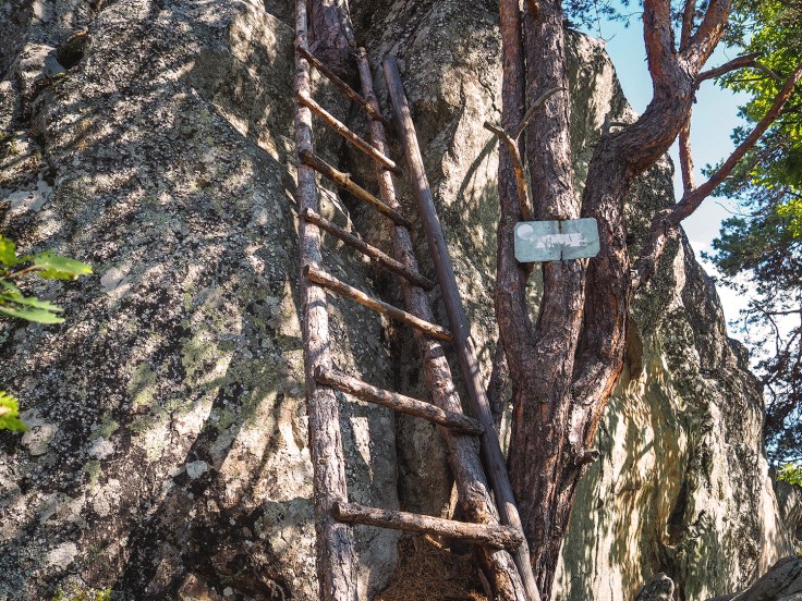 За да се качите на най-високата точка на скалите трябва да се покатерите по отвесна дървена стълба. Аз имам страх от високо и се отказах, понеже имаше силен вятър.